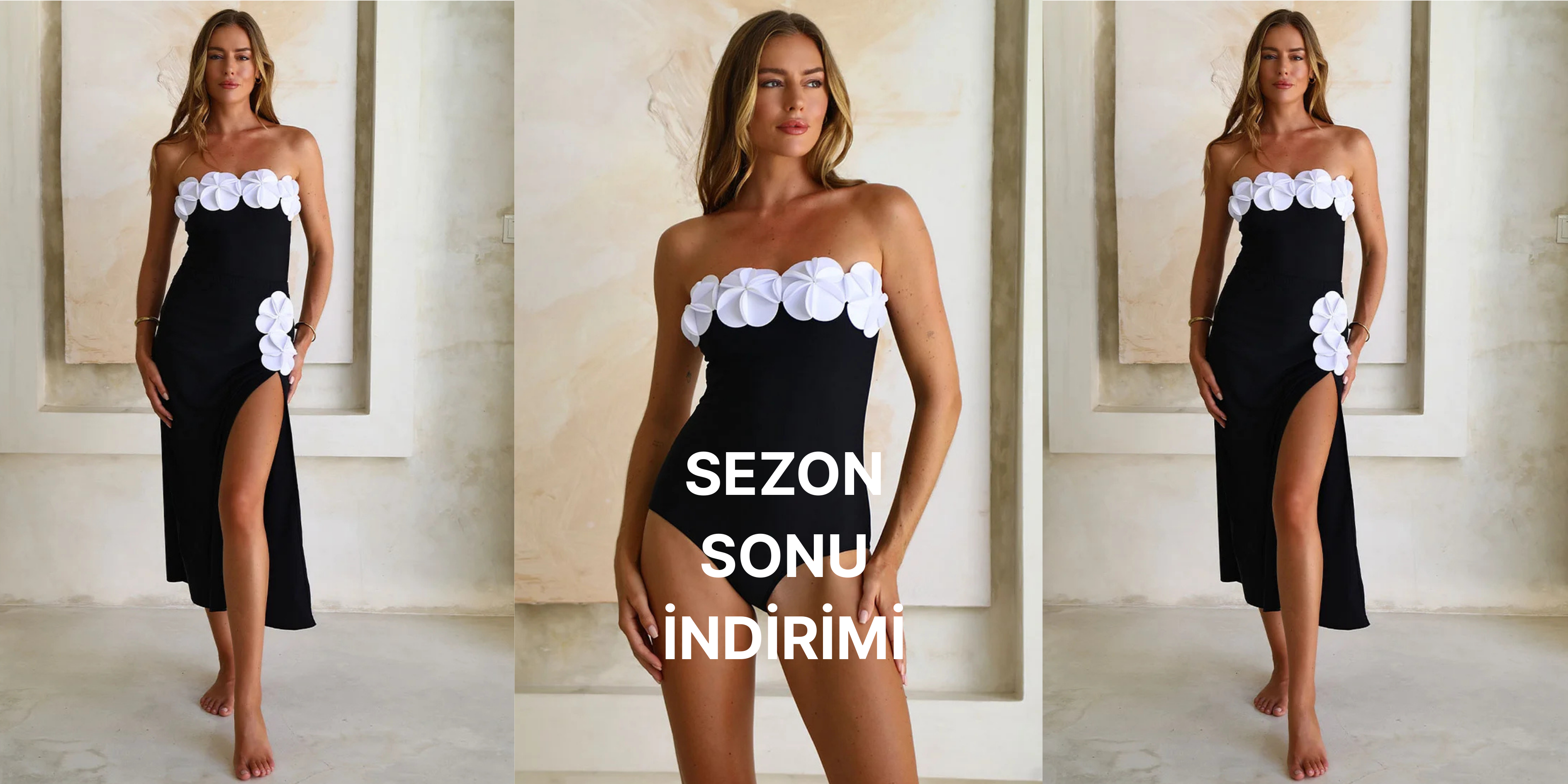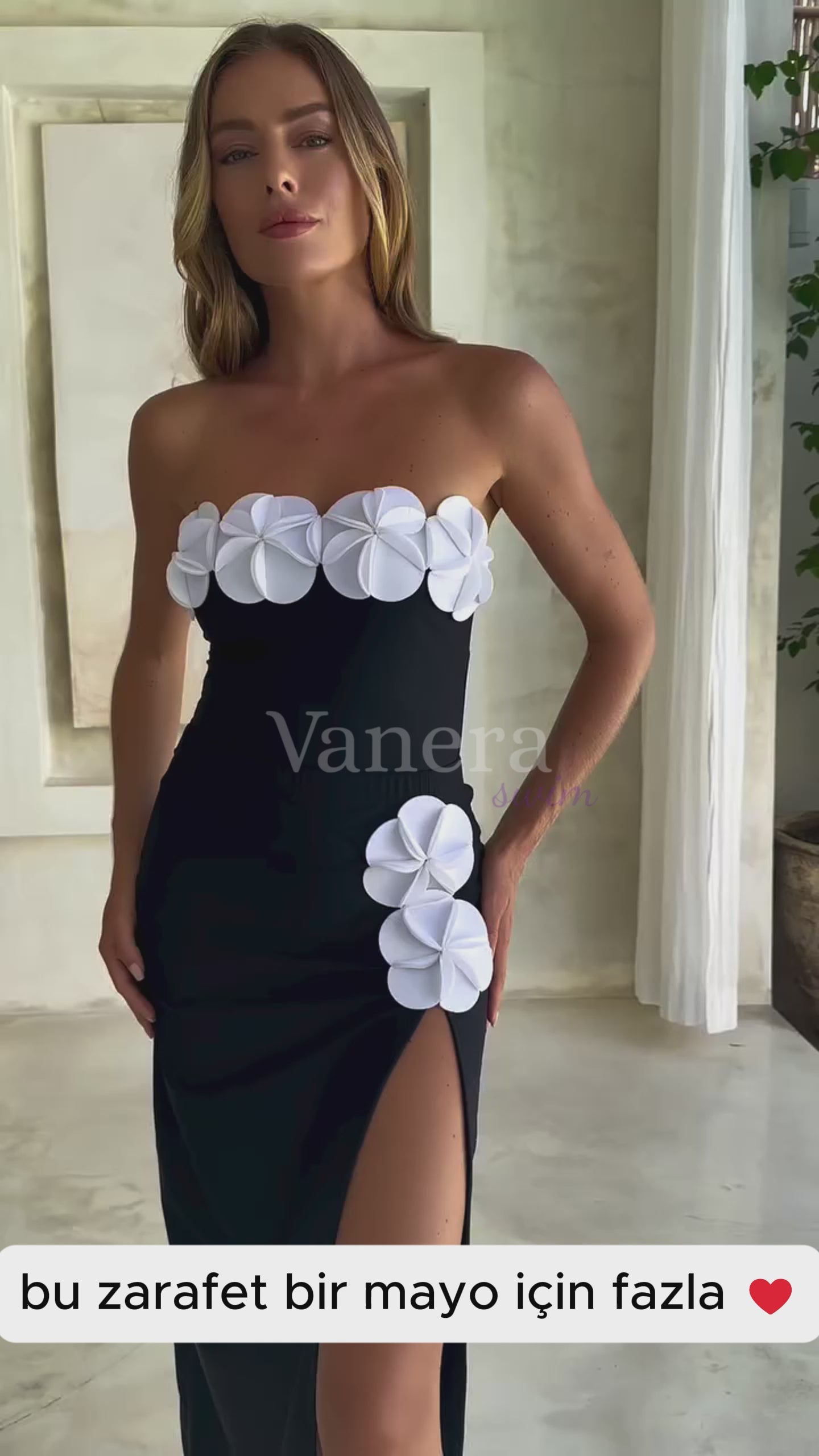 3D Çiçekli Tek Omuz ve Straplez Mayo Takımı